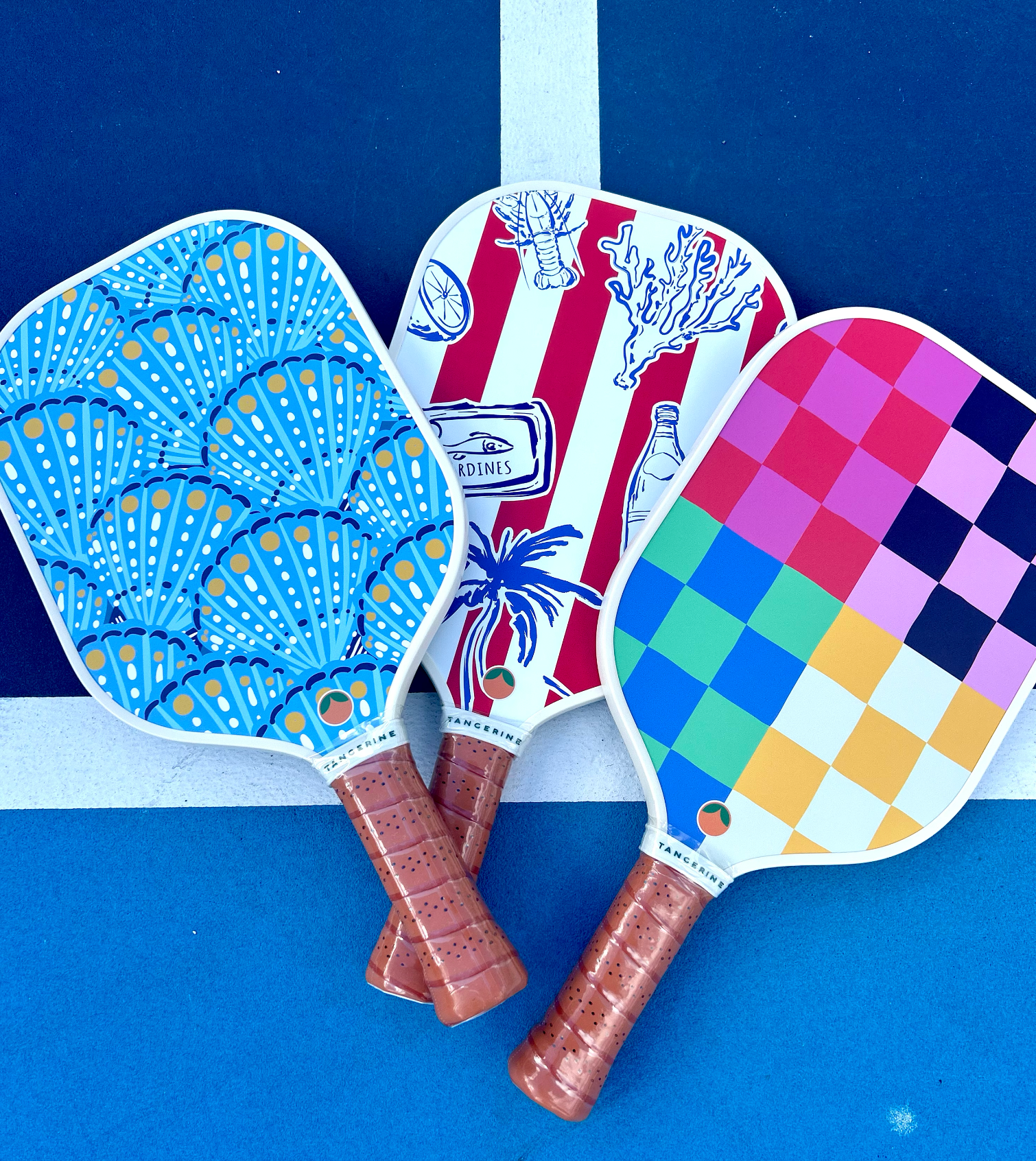 Taormina Pickleball paddle designed by Tangerine.  Features fun and vibrant stripes.